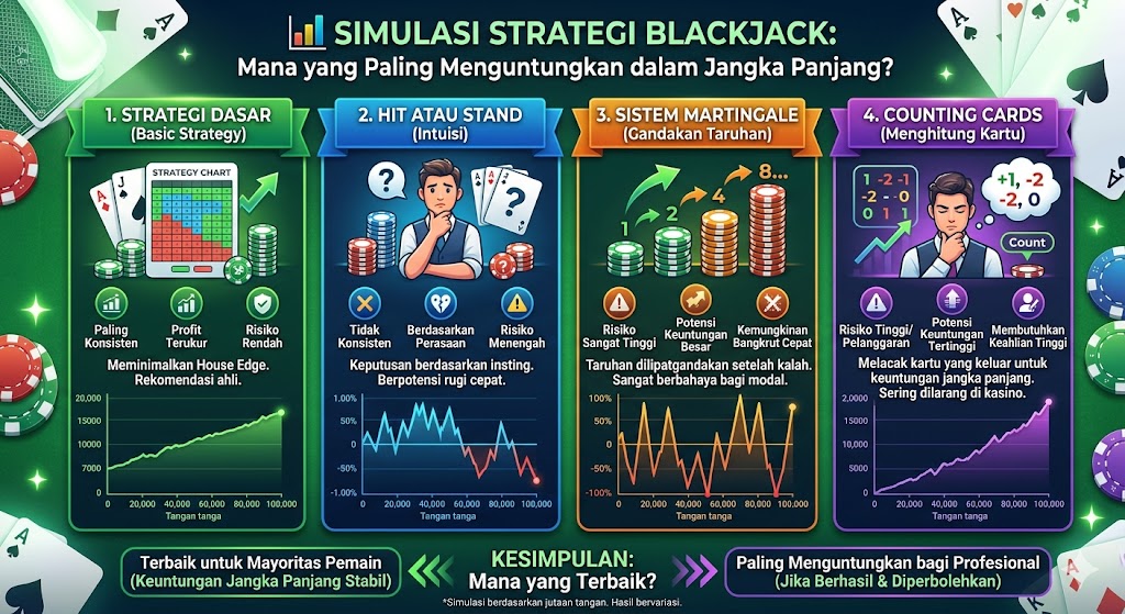 📌 Pendahuluan Dalam permainan blackjack, banyak strategi terdengar menjanjikan di atas kertas. Beberapa pemain percaya pada sistem taruhan tertentu, sementara…